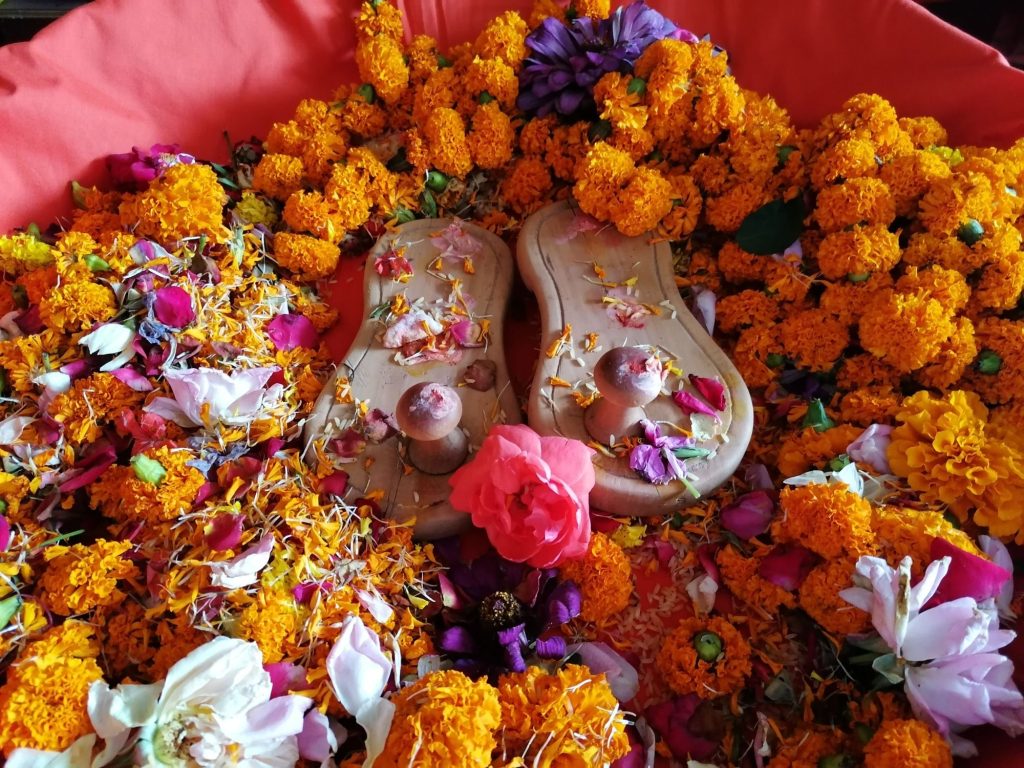 Majd miután Gulatiji – és aztán sorban szinte mindenki – megmosta Szvámí Prémánanda lábát és virágokkal szórta be, kezdődhetett a kírtan. Na én erről természetesen megléptem, továbbra sem szakít fel bennem az ég világon semmit a zene.