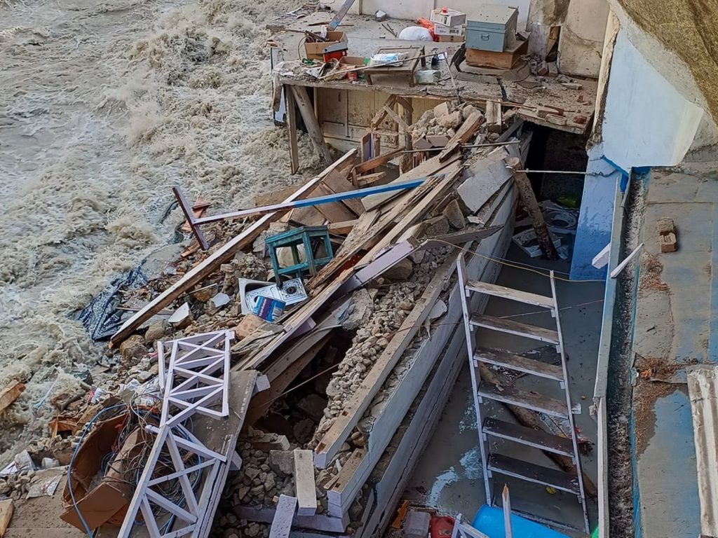 Szó szerint. A Gangótriban található ásram, ami régen a Divine Life Society épülete volt, ahol Jógirádzs fogadta az odaérkező csoportokat, ahol Szvámí Csidánanda heteket töltött nyaranta, aminek a kertjét Szvámí Prémánanda is segített megalkotni, az a kék épület, amely nemrég lett csodaszépen felújítva kívülről, megsemmisült.