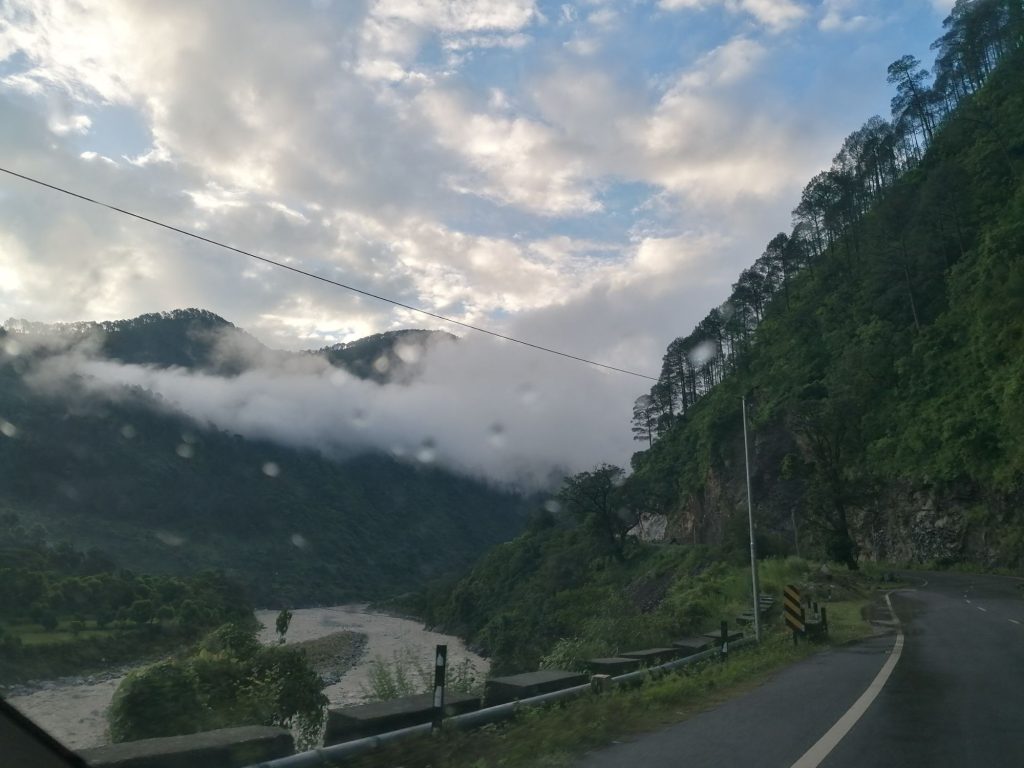 Az úton kétszer álltunk meg, egyszer a sofőr teázott egyet, egyszer meg nekem kellett egypercesre kiszaladni. Szerencsére egy olyan szakaszt választottam, ahonnan fantasztikus kilátás nyílt. Addigra már amúgy is készenlétben volt a kamera, hiszen ahogy elhagytuk Uttarkashit és beértünk a hegyek közé, a monszunfelhők varázslatos látványt nyújtottak, csak győztem fotózni őket. A sofőr ragaszkodott hozzá, hogy készítsen rólam egy képet, mikor megálltunk. Legalább marad egy emlék az utolsó utazásról Rishikeshbe…