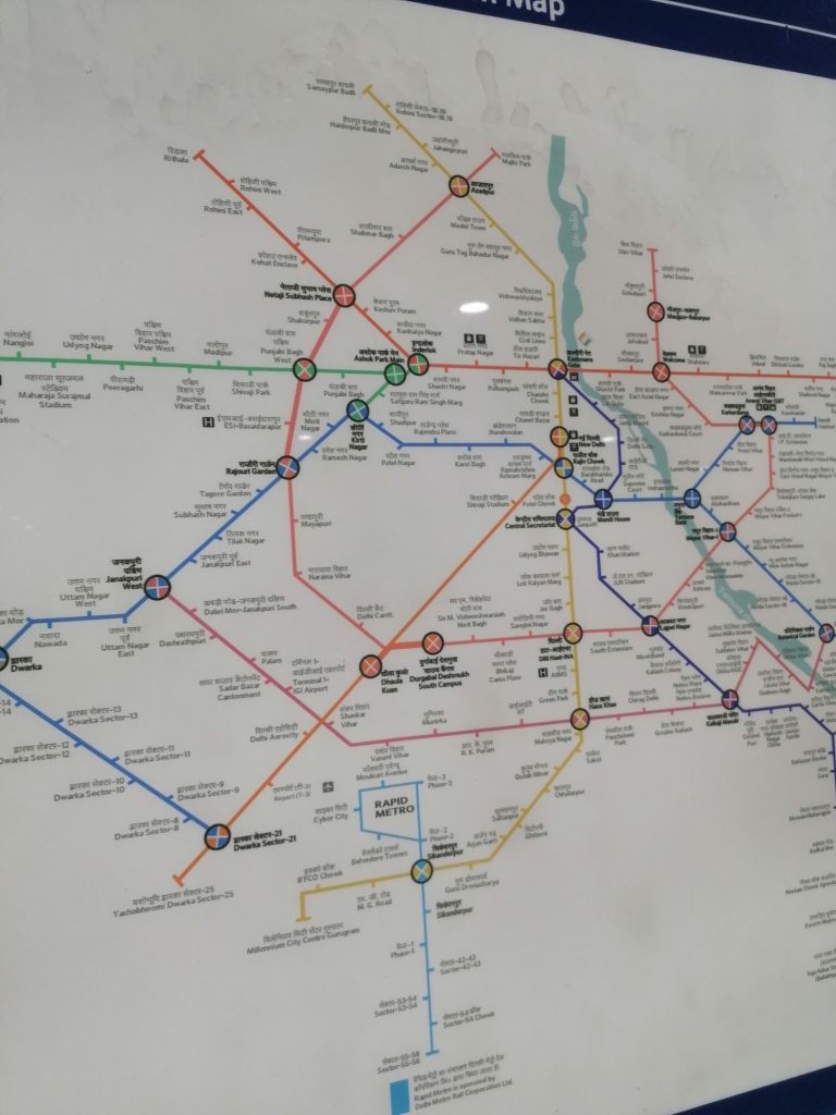 Persze először metróznom kellett. Na hát ne tudjátok meg… Aki Budapesten a 4 metróvonalon el tud tévedni, az el se induljon Delhibe, mert szívrohamot fog kapni. Van vagy 16 vonal, egy vonalon is többfelé mennek szerelvények. Az egyes vonalakon saját jegyet kell használni, nem lehet csak úgy egy „kérek egy vonaljegyet”-tel elintézni.