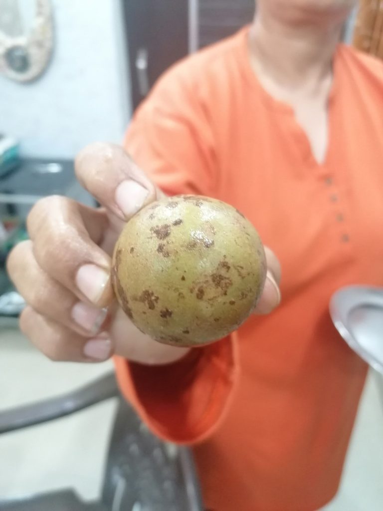 Aznap délután még kimentünk kicsit, sétáltunk egy közeli parkban, aztán visszafelé megálltunk venni pár érdekes gyümölcsöt. Én kertészmérnök létemre csúfosan megszégyenültem. Egy furi gyümit lekrumpliztam, ami valójában a Chiku nevű… háááá…. valami. 🙂 Az árus és Szváminí tiszta szívből kinevetett.